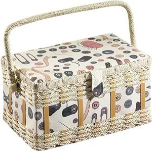 Nähkästchen Nähkorb Nähkörbchen Nähkasten - Knopfmuster - 28x18x16 cm Beige