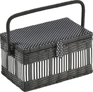 Nähkästchen Nähkorb Nähkörbchen Nähkasten - mit Punkten und Streifen - 28x18x16 cm Schwarz