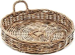 Tablett Dekotablett Serviertablett aus Rattan rund -kubu grau- 49x49x10cm