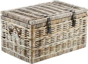 Truhe Korbtruhe Sitztruhe - Rattan - grau - mit Textil - 70x45x40 cm