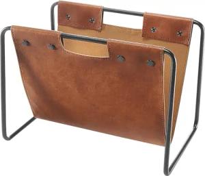 Zeitungsständer, 37x24x27 cm, braun, Kunstleder & Metall, moderner Zeitschriftenhalter im Industrial Look, Organizer für Zeitungen, Magazine & Bücher, dekorativ und funktional