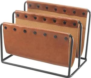 Zeitungsständer aus Metall und Kunstleder braun mit Zwei Fächern 38x25x27cm