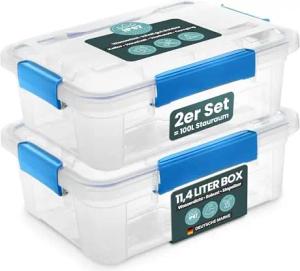 Aufbewahrungsbox mit Deckel (11,4 Liter) – Wasserdichte Box stapelbar, Luftdichte Box BPA- & schadstofffrei, robuste Lagerboxen mit Silikondichtung, Kunstoffbox mit 6 Clips (2)