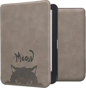 Hülle kompatibel mit Kobo Clara BW/Clara Colour/Tolino Shine (5) / Shine Color Hülle - Kunstleder Cover - Katze Meow Grau Schwarz