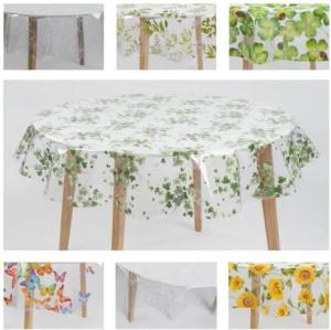 Ø 140 cm Premium Line Transparente Tischdecke rund - Wasserdicht & abwischbar - Tischschutz, Muster:Transparent Grün Blätter, Größe: Rund 140cm
