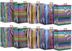 Premium-Line Große Geschenktüten Geschenktaschen 10-100 Stk Large Stripes, Anzahl:10, Muster Tüten:Large Stripes