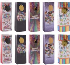 Premium Weinflaschentüten Geschenkverpackung Blumen 10-100 Stk, Anzahl:20, Muster Tüten:Happy Birthday
