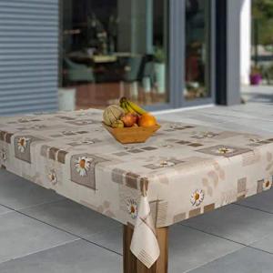 Wachstuch-Tischdecke Abwaschbar Wachstischdecke PVC Plastik-Tischdecken Eckig Meterware Abwischbar, Muster:Margerite Braun Beige, Größe:90x120