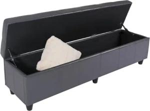 Bank Sitzbank mit Aufbewahrung Kriens XXL, Leder + Kunstleder, 180x45x45cm - grau