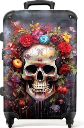 NoBoringSuitcases.com® Koffer Handgepäck Trolley Rollkoffer Kleine Reisekoffer mit 4 Rollen - Schädel - Bart - Haare - Totenkopf - 55x35x20cm - Fotokoffer - Kabinenkoffer - Boardgepäck