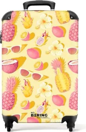 NoBoringSuitcases.com Reisekoffer, Großer Hartschalenkoffer mit TSA Schloss, Mittelgroß, 20kg Gepäck - Zitronen-Rosa-Gelb, 67cm - 72L