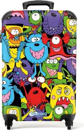 NoBoringSuitcases.com® Kinderkoffer Jungen Koffer handgepäck Trolley Koffer Kinder Jungen - Muster - Monster - Lustig - Suitcase Koffer klein, Trolley Koffer 55x40x20