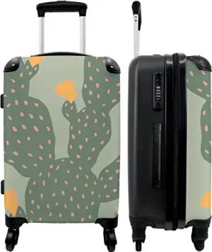 NoBoringSuitcases.com® Koffer groß Trolley Rollkoffer Reisekoffer mit 4 Rollen Fotokoffer - Kaktus - Grün - Natur - Gelb - 67x43x25cm - 90 Liter