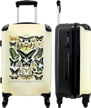 NoBoringSuitcases.com® Koffer groß Trolley Rollkoffer Reisekoffer mit 4 Rollen Fotokoffer - Schmetterling - Natur - Vintage - Tiere - Illustration - 67x43x25cm - 90 Liter