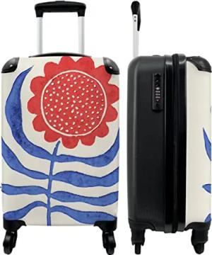 NoBoringSuitcases.com® Koffer Handgepäck Trolley Rollkoffer Kleine Reisekoffer mit 4 Rollen - Blume - Pflanze - Rot - Blau - 55x35x20cm - Fotokoffer - Kabinenkoffer - Boardgepäck