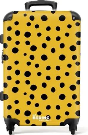 NoBoringSuitcases.com Reisekoffer, Koffer Groß, Hartschalenkoffer Groß, TSA Schloss, Reisekoffer Groß, Koffer Mittelgroß 4 Rollen Leicht, Koffer Mittelgroß (Punkte - Gelb-Schwarz, 67 cm - 72 L)