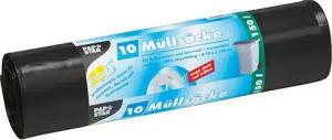 Müllsäcke, 12328, LDPE 150 l, 150 cm x 70 cm, schwarz, extra stark, 10 Stück auf der Rolle