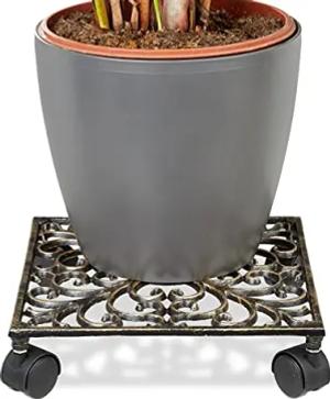 10x Pflanzenroller Gusseisen, quadratisch, 27,5 x 27,5 cm, Blumentopfuntersetzer, 4 Rollen, stabil, Blumenroller, Bronze