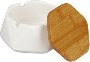 5 x Aschenbecher mit Deckel, Keramik, draußen & drinnen, HxBxT: 6 x 10,5 x 10,5 cm, Windaschenbecher, weiß/Natur
