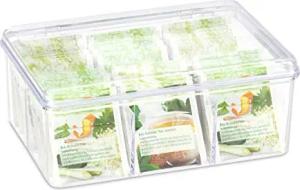 2 x Teebox, je 6 Fächer, 90 Teebeutel, Teedose mit Klappdeckel, Aromaschutz, HxBxT: 9 x 21,5 x 14,5 cm, transparent