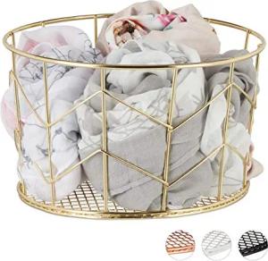 2 x Drahtkorb, rund, Vintage Design, Aufbewahrung, Kleidung, Accessoires, Deko Korb, Metall, HxD: 12,5 x 22 cm, Gold