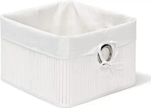 Aufbewahrungskorb Bambus, Badkörbchen quadratisch, Stoff Regalkorb flach, HBT 14 x 31 x 31 cm, faltbar, weiß