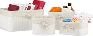 8 TLG Aufbewahrungskorb Set, aus Bambus mit Stoffbezug, 4 Größen, für Regal & Schrank, Bad, Kosmetik & Handtücher, weiß