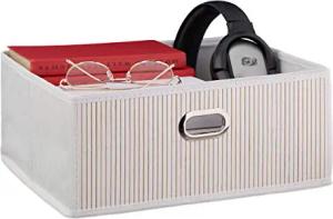 3 x Aufbewahrungskorb, Stoffbezug, Bambus, rechteckig, Bad, Accessoires, Spielzeug, HxBxT: 20x31x31 cm, weiß