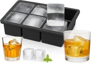 Eiswürfelform Silikon, wiederverwendbar, XXL Silikonform für 5 cm Eiswürfel, 6 einzelne Eiswürfel, schwarz