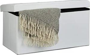 Faltbare Sitzbank 38 x 76 x 38 cm HxBxT, 2-Sitzer m. Stauraum, Kunstleder Sitzhocker 300 kg belastbar, weiß