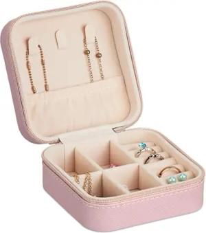 Schmuckkästchen, kleine Schmuckaufbewahrung, Ringe & Ketten, Reise Schmucketui, HxBxT: 5 x 10 x 10 cm, rosa