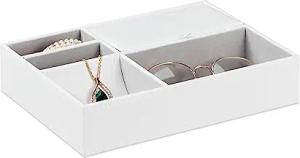 Schmucktablett, 5 Fächer, moderne Schmuckaufbewahrung, HBT: 5x25,5x18,5 cm, Schmuck Schubladeneinsatz, weiß