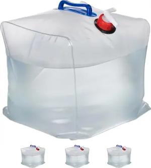 Wasserkanister 12er Set, 20 L, faltbar, Zapfhahn, Griffe, Camping Kanister, BPA-freier Kunststoff, transparent