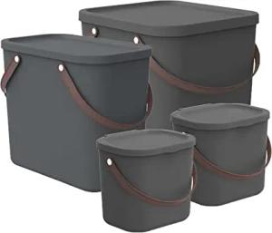 Albula 4er-Set Aufbewahrungsbox 1x40l +1x25l + 2x6l mit Deckel, Kunststoff (PP recycelt), Anthrazit, 1x40l + 1x25l +2x6l (43.5 x 36.5 x 47.6 cm)