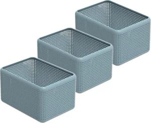 Country 3er-Set Aufbewahrungsbox Rattan-Optik, Kunststoff (PP) BPA-frei, Weiss, 3 x A4+/28l, (43 x 33 x 21,5 cm), 3