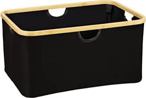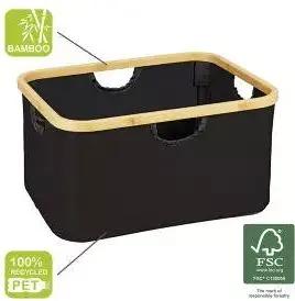 Wäschekorb Mod. Ecori, Wäschesammler faltbar 32 Liter, Rahmen aus FSC®-zertifiziertem Bambus, Textil aus recyceltem Polyester, 54 x 26 x 36, Natur/Schwarz