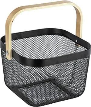 Badkorb Mod. Bambusa, Dekorativer Korb aus matt lackiertem Stahl kombiniert mit hochwertigem Bambus Tragegriff, Tragekorb im Loft-Style, trendiges Accessoire in 25 x 17 x 25 cm, Schwarz/Natur