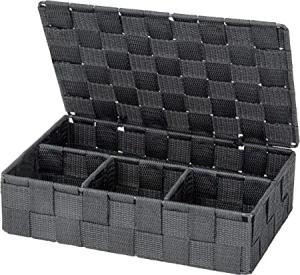 Badorganizer Mod Adria Deckel Dunkelgrau praktische Aufbewahrungsbox für Bad und Haushalt Maße 26 x 7,5 x 17 cm Kunststoff-Geflecht