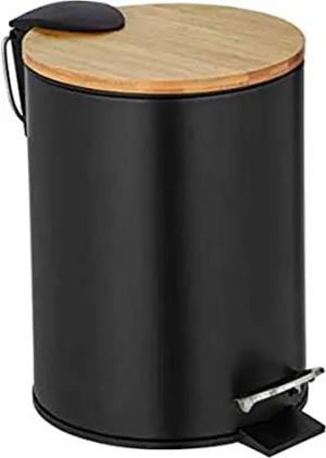 Kosmetik-Treteimer Mod. Tortona, schwarzer Eimer mit Bambusdeckel, 3 Liter, Badezimmer-Mülleimer mit Easy-Close Absenkautomatik, aus rostfreiem satiniertem Edelstahl, 17 x 23,5 x 21 cm