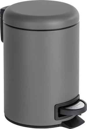 Schwingdeckeleimer Mod. Agropoli S Grau, 2 Liter, Badezimmer-Mülleimer mit Deckel, Abfalleimer aus hochwertigem Kunststoff mit plastischer Formgebung und gefrosteter Oberfläche, Ø 14,5 x 20 cm