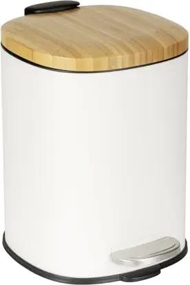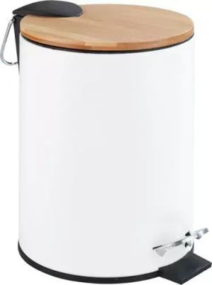 Kosmetikeimer Mod. Fianema Treteimer 3L weiß mit Bambusdeckel Easy-Close Absenkautomatik Metall Kunststoff 17 x 23,5 x 21 cm Natur schwarz