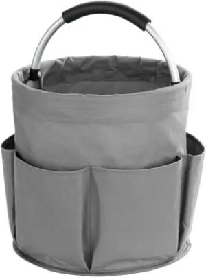 Maximex Reinigungs Caddy, Putztasche mit 6 Außenfächern, 16 l Hauptfach, stabiler Organizer für Putzmittel und Zubehör, gepolsterter Tragegriff, faltbar, wasserabweisend, Ø 28 x 26,5 cm,Polyester,Grau