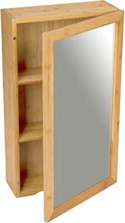 Spiegelschrank Bambusa, schmaler Bambus-Badezimmerschrank mit Spiegel, Magnetverschluss, Griffmulde und Zwei Mittelböden zur übersichtlichen Aufbewahrung von Bad-Accessoires, 35 x 60 x 15 cm