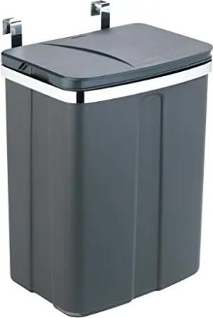 Tür-Abfalleimer, kompakter Mülleimer mit Deckel zum Einhängen an Küchenschrank oder -Schublade, geeignet für Badezimmer und Küche, aus Kunststoff/Stahl, Füllmenge 12 l, 26 x 34 x 17 cm, Grau