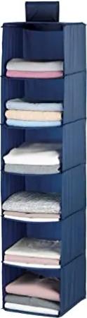 Wäschesortierer Business Hängeaufbewahrung, Hängeregal zur Aufbewahrung von Wäsche mit 6 Fächern, Polyester, 30 x 122 x 30 cm Blau