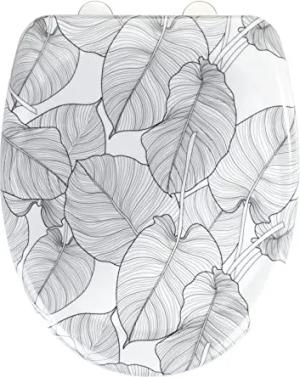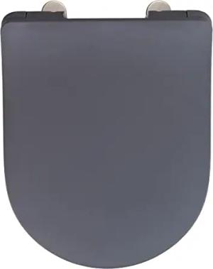 WC-Sitz Samoa, Premium-Duroplast Design-Toilettensitz mit Easy-Close Absenkautomatik & Fix-Clip Hygiene-Befestigung aus rostfreiem Edelstahl, antibakteriell & kratzfest, 38 x 45 cm, Weiß/Grau