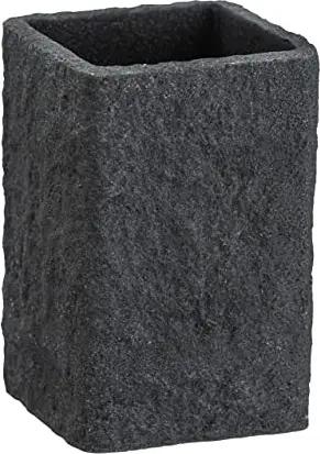 Zahnputzbecher Villata, Zahnbürstenhalter für Zahnbürste und Zahnpasta in Naturstein-Optik aus hochwertigem Polyresin, 7,5 x 11 x 7,5 cm in Grau