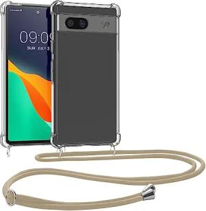 Necklace Case kompatibel mit Google Pixel 7a Hülle - Silikon Cover mit Handykette - Band Handyhülle Gold Transparent