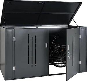 2er-Fahrradgarage HWC-K64, Gerätehaus Fahrradbox mit Deckel, abschließbar Metall 121x202x100cm, anthrazit