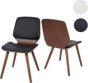 2er-Set Esszimmerstuhl Malmö T501, Retro Design ~ schwarz, Sitzfläche Kunstleder weiß, dunkle Beine
